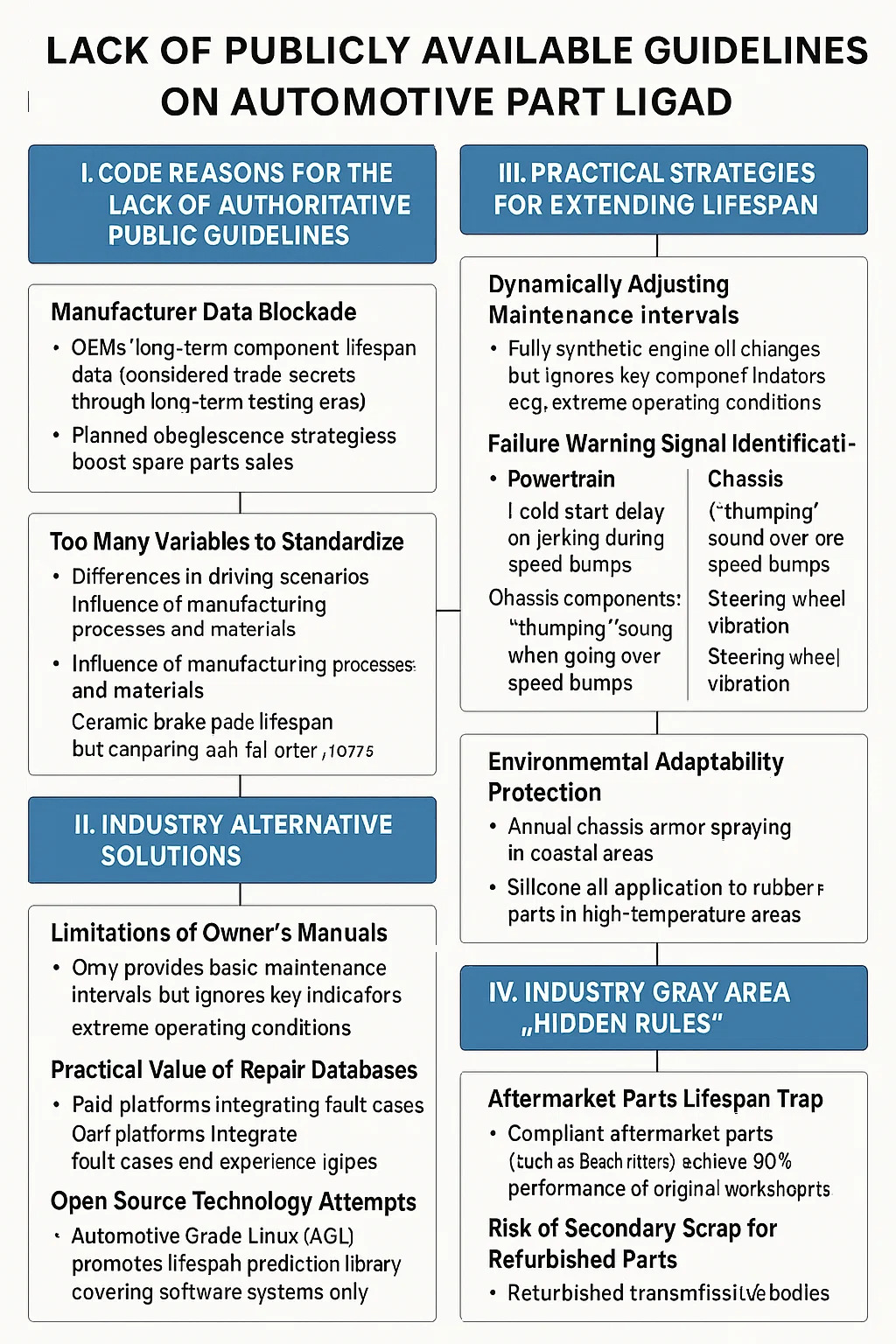 • Limites des manuels du propriétaire : fournit uniquement des intervalles d'entretien de base (par exemple, les vidanges d'huile), mais ignore les indicateurs d'avertissement des composants clés (par exemple, les signes d'usure du corps de soupape de transmission). Ne couvre pas les recommandations relatives aux conditions de fonctionnement extrêmes (par exemple, vidange précoce de l'huile du différentiel après une conduite tout-terrain).