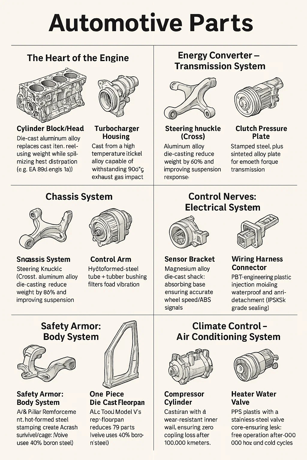 Pièces automobiles comprennent les centaines d’unités fonctionnelles qui composent un véhicule, classées en six systèmes clés.